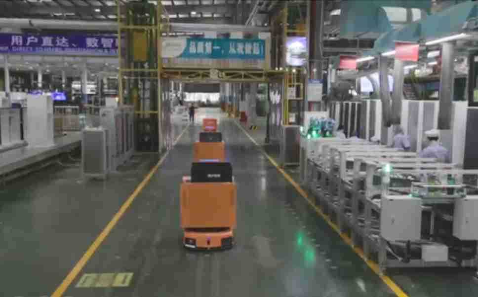 为车载冰箱物流配送打造的智能解决方案,,包含产中物流通过潜伏举升AMR搬运至线边,,产后成品物流智能仓储,,流程包含产中物流智能齐套入库,,,,线边安灯叫料AMR智能配送至线边,,,,成品入库、、、、出库,,,,通过无人堆高车机器人,,,,智能仓储管理替代人工作业管理,,,实现更高存储、、更高效率、、、、更具柔性化的解决方案。。。。